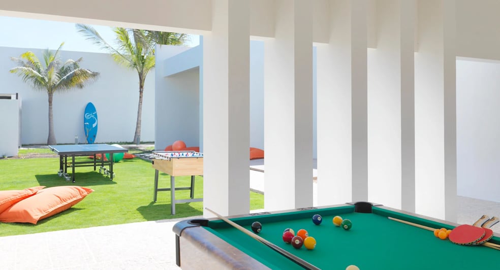 At Al Baleed Resort Salalah by Anantara, there are many leisure facilities including an infinity swimming pool, fitness centre, mini golf course, Kids' Club and Teens' Club.