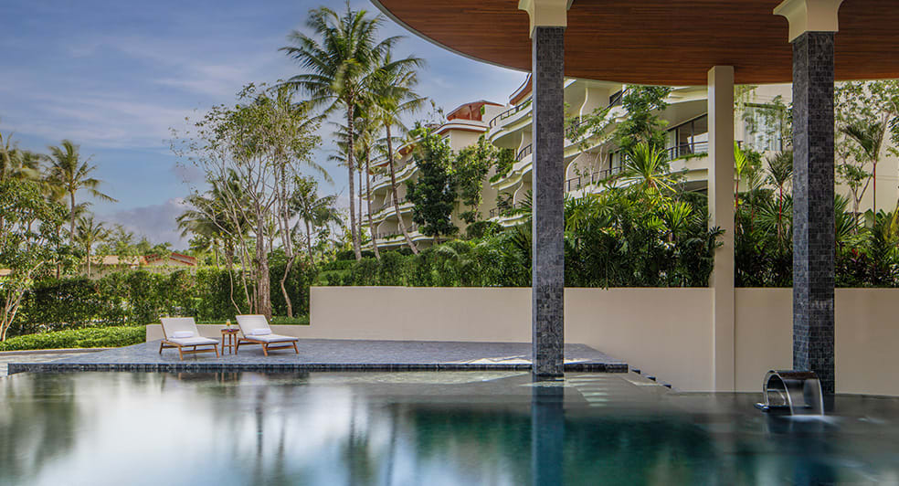 Our suites and penthouses are located in a low-rise building, offering stunning sea panoramas. Family suites have been specially designed as wonderlands of fun, with bunk beds, slides and play areas to keep our youngest guests happy. Pool villas, meanwhile, are dotted around the peaceful grounds, including along the kilometre of private beachfront. Enjoy every luxury imaginable, including the services of a butler to see to your every need.
