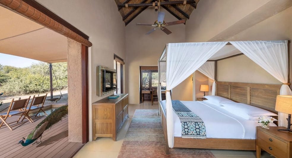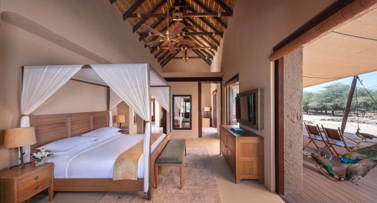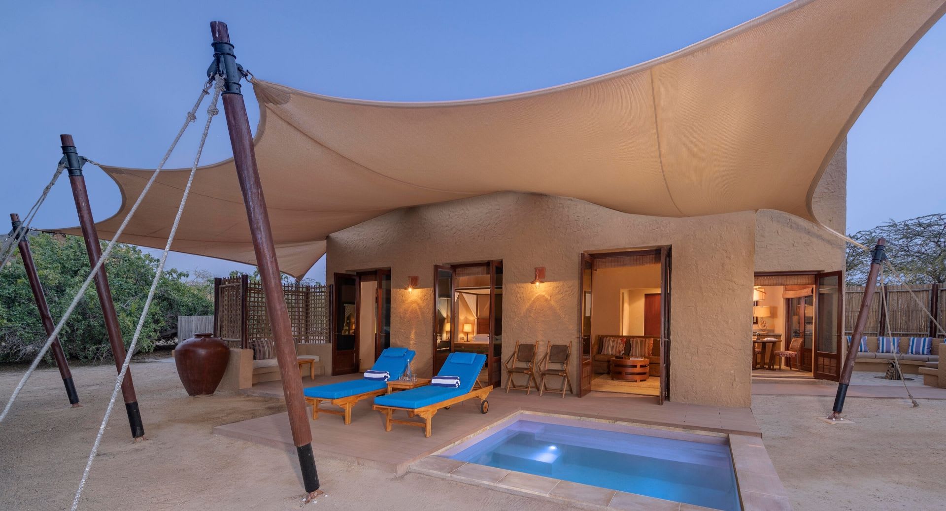 Reminiscent of Africa’s tented safari camps, our 30 villas have been constructed from natural materials, blending into the landscape. They are open to maximise the views, with the canopied terrace a favourite for sundowners, and inside, luxurious amenities ensure your adventure nevertheless unfolds in comfort and style. Opt for a private plunge pool and soak away the days, at one with inquisitive gazelles and peacocks.