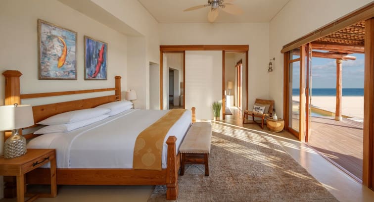 Our accommodations are reminiscent of a traditional Emirati fishing village, with barasti-style villas that are simple yet luxurious featuring raw driftwood and sand juxtaposed with discreetly placed technology and amenities. All are located right on the beach, allowing you to wander, swim and sunbathe at your leisure. And with only 30 villas in total, peace and privacy pervade: welcome to your castaway dream.