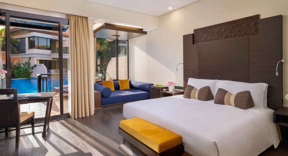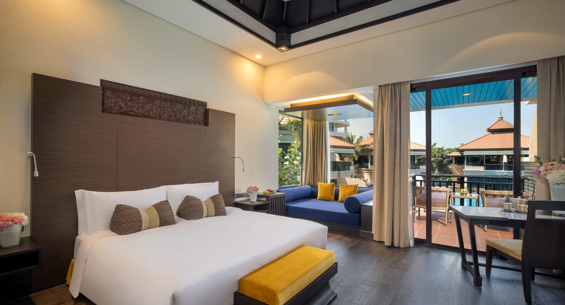 Setting the standard for five-star hotels on Palm Jumeirah, Asian-inspired elegance meets Arabian Gulf vistas at Anantara The Palm Dubai Resort. Escape to the exclusive Over Water Villas for romantic seclusion or choose lagoonside rooms for quick access to family-friendly swimming. Stay on the stretch of private sands or select a Pool Villa to splash in comfort. This Palm Jumeirah hotel offers a lavish getaway, blending refined style with world-class luxury at every turn.