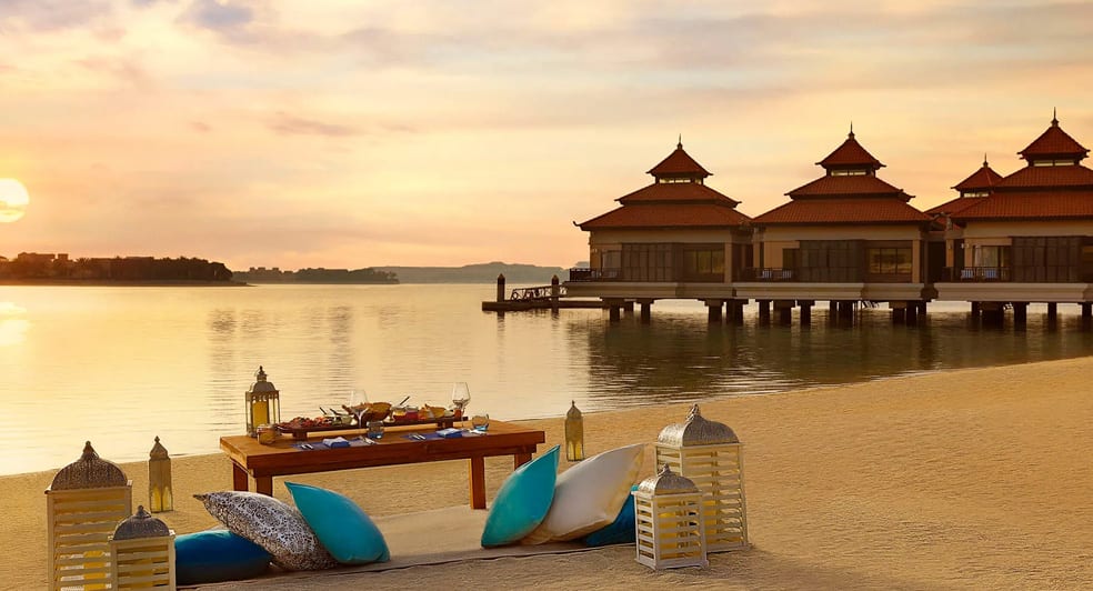 With 400 metres of pristine private beachfront and sweeping views of the Arabian Gulf, this Palm Jumeirah hotel is a sophisticated haven for couples and families alike. Indulge in a unique stay with direct lagoon access rooms or experience the UAE’s first overwater villas, where opulence meets tranquillity. Revel in signature hammam rituals at the Anantara Spa, and delight in the timeless elegance of Thai-inspired luxury that defines every stay.