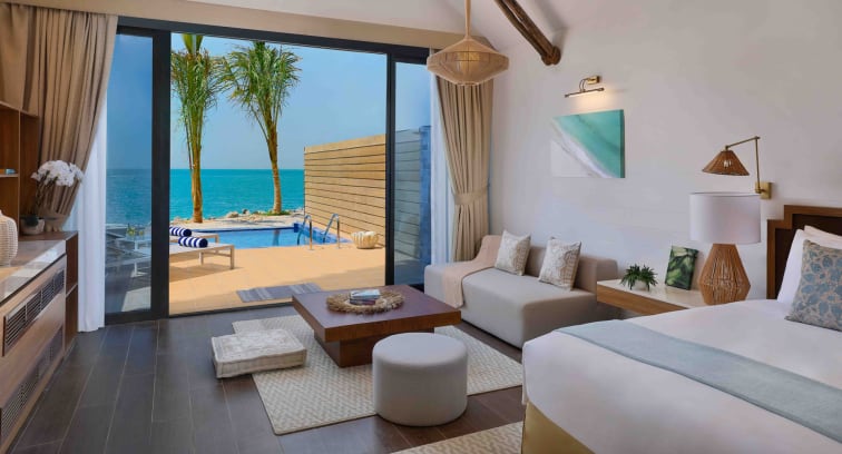 Here, every detail is designed to cocoon you in relaxation, offering a serene sanctuary where you can unwind in style. Marvel at the Arabian Gulf vistas from sunrise to sunset, whether in room, suite, or villa where the décor reflects the island location. Experience a blend of modern sophistication and sandswept beauty in an unforgettable setting.