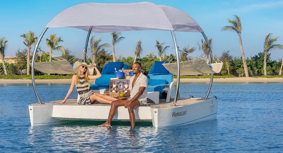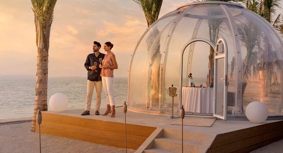 Situated in the Arabian Gulf, just four kilometres from the city by speedboat, this private island resort offers a thoughtfully designed retreat perfect for both romantic escapes and memorable family getaways.