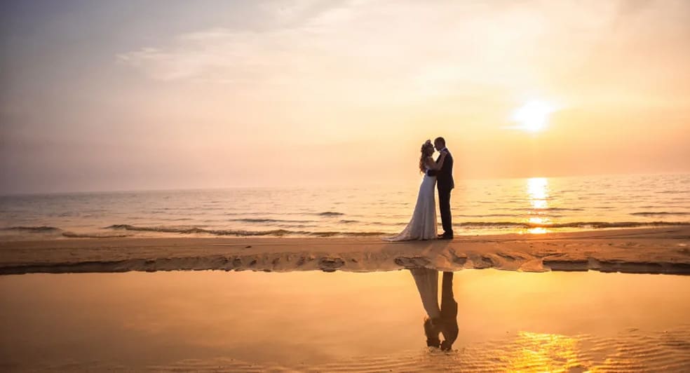 Envision your special day at Anantara World Islands Dubai Resort, where a private beach at sunset, framed by the iconic Dubai skyline, sets the perfect scene.
