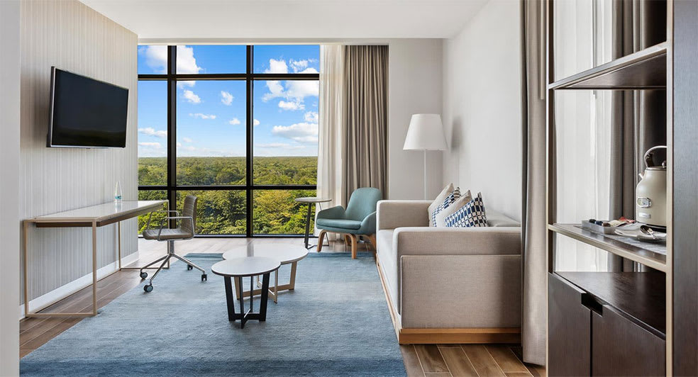 Nature meets the future in our super comfy, ultra-modern rooms and suites. You’ll find all the conveniences you need for a laid-back, stress-free stay, plus gorgeous views of the lush green Mayan countryside. Kick back in a Standard Room, spread out in a Superior Room or splurge on a Junior Suite, with separate living and sleeping zones. Wherever you crash, you can look forward to plush beds, powerful rain showers and Chromecast TV. Wake up to a fresh coffee and throw your jams on the Bluetooth speaker.