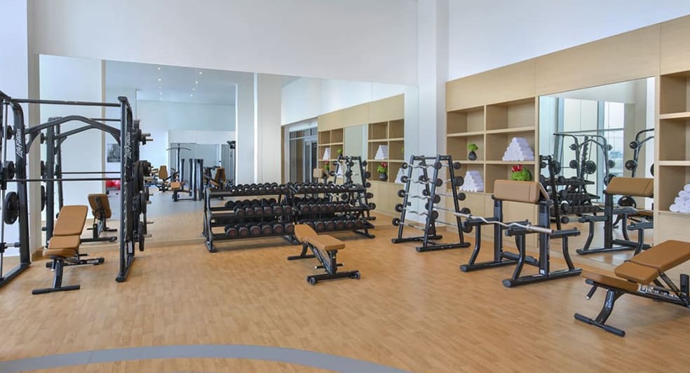The tiki-themed bar and social hub serves tasty bites by the pool. The gym is open 24 hours and all the action of the Emirate is within easy reach.