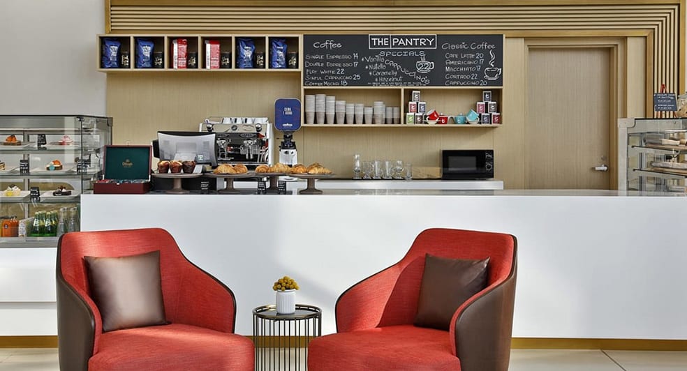 Chill, sip and dine on international flavours at eateries for any occasion. Before, after or during your swim, grab some sustenance at Pele Pool Bar & Social Club. Graze from a menu that spans the globe, with Asian delights including butter chicken, pad Thai and salmon maki, tasty pizza and pasta and healthy salads for balance. Eat indoors or snack on your sun lounger, and don’t miss the irresistible tiki cocktails mixed by the pros at the poolside bar. There’s also a shisha corner on the pool deck where you can smoke your favourite flavours. If you’re on the go, grab something light and fast at The Pantry.