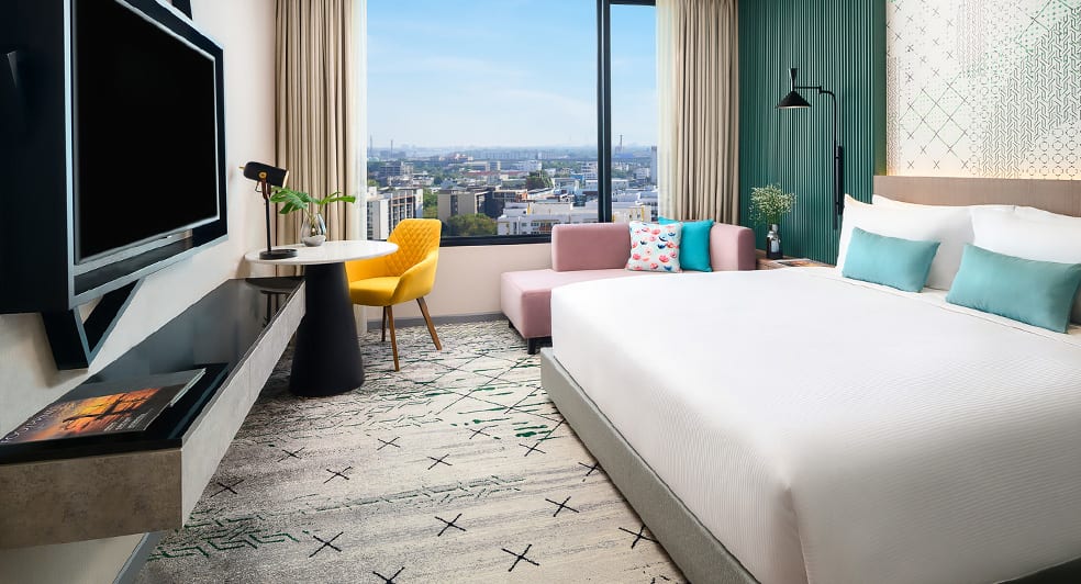 Check in to your upscale hotel on Bangkok’s Sukhumvit Road and find yourself in the heart of the action, yet high above it all. Connected to the BTS Skytrain and perched on top of Century Movie Plaza, Avani Sukhumvit Bangkok Hotel gives you sparkling skyline views of the city and easy access to it all.