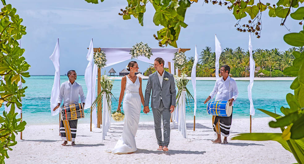 Celebrate your love in the Maldives, where crystal-clear waters, soft white sands, and golden sunsets create the perfect backdrop for your dream wedding. Exchange vows on the beach or in an ancient coconut grove at the heart of the island, with every detail tailored to your tastes.