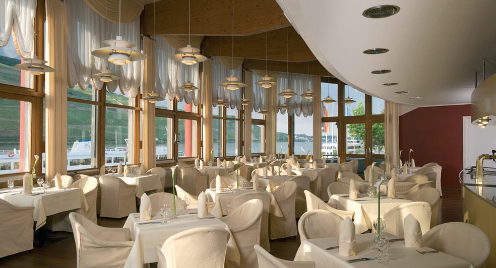 Housed in a conservatory-style setting, our bright and welcoming Aquarius Restaurant is the place to be for delicious afternoon and evening meals. International and local specialities are on offer, as are panoramic views of the Rhine from inside and on the riverfront terrace.