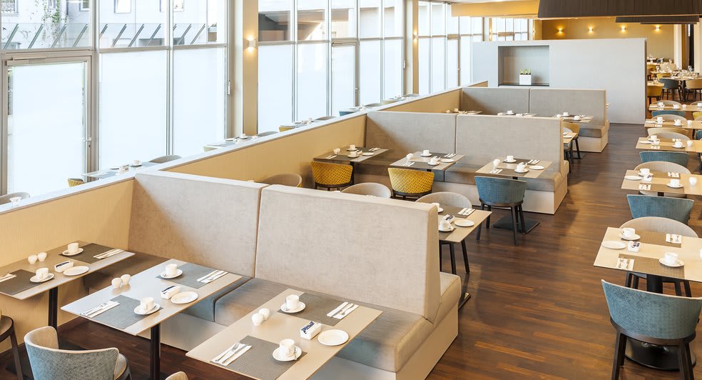At NH Düsseldorf City Nord, savour a wide variety of delicious dishes at NH Düsseldorf City Nord Restaurant. Rise and shine with our freshly made breakfast buffet, which includes pastries, cheeses, fruit, yoghurt, and more. Hot dishes can also be made to order. For lunch and dinner, enjoy an internationally inspired menu combining cuisines from both Germany and Spain, with a wine list to match. Alternatively, if you would like to eat in the comfort of your room, room service is available from 06:00 to 23:00.