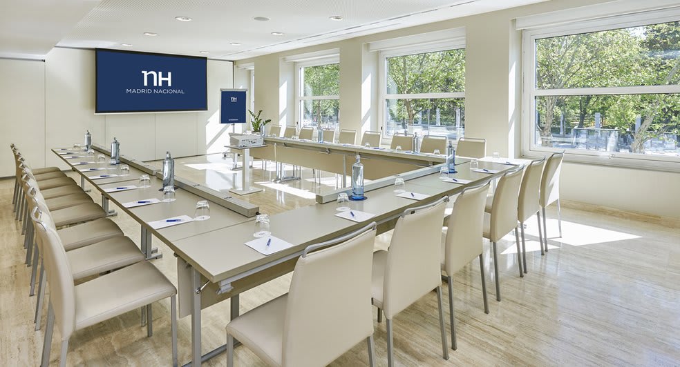 The elegant and sweeping staircase in the lobby of the NH Madrid Nacional creates the ideal entrance for a gathering, with the first floor available exclusively for meetings and events. With a capacity for up to 200 people in the theatre, whatever room combination you require, we can adapt to it.