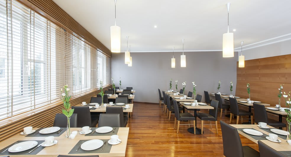 NH München Messe hosts breakfast, lunch, and dinner in our elegant restaurant. Enjoy healthy and deliciously fresh breakfast options, and lunch or dinner dishes from a wide variety of local and international cuisines. Relax with a drink at the lobby bar or enjoy the beauty of our outdoor terrace.