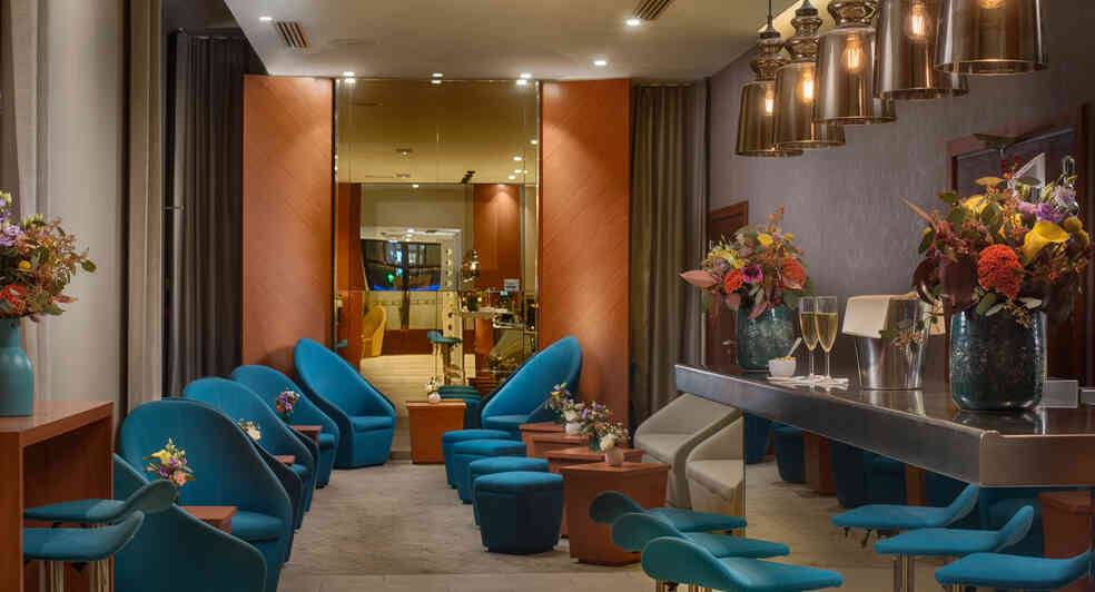 Situated on the ground floor, our Lounge bar is a comfortable and relaxed space with an extensive selection of wines, beers, soft drinks and small plate dining options. Open daily from 07:30-24:00.