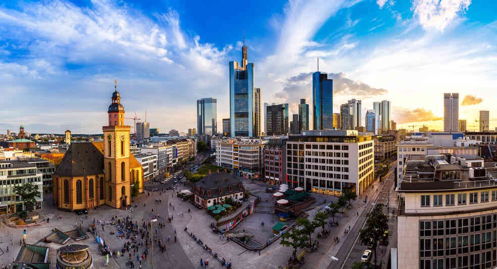 - Stay in a striking glass tower in Frankfurt’s bustling financial district
