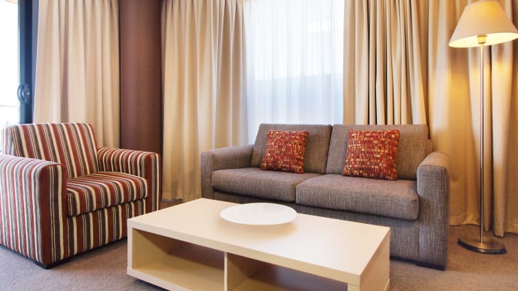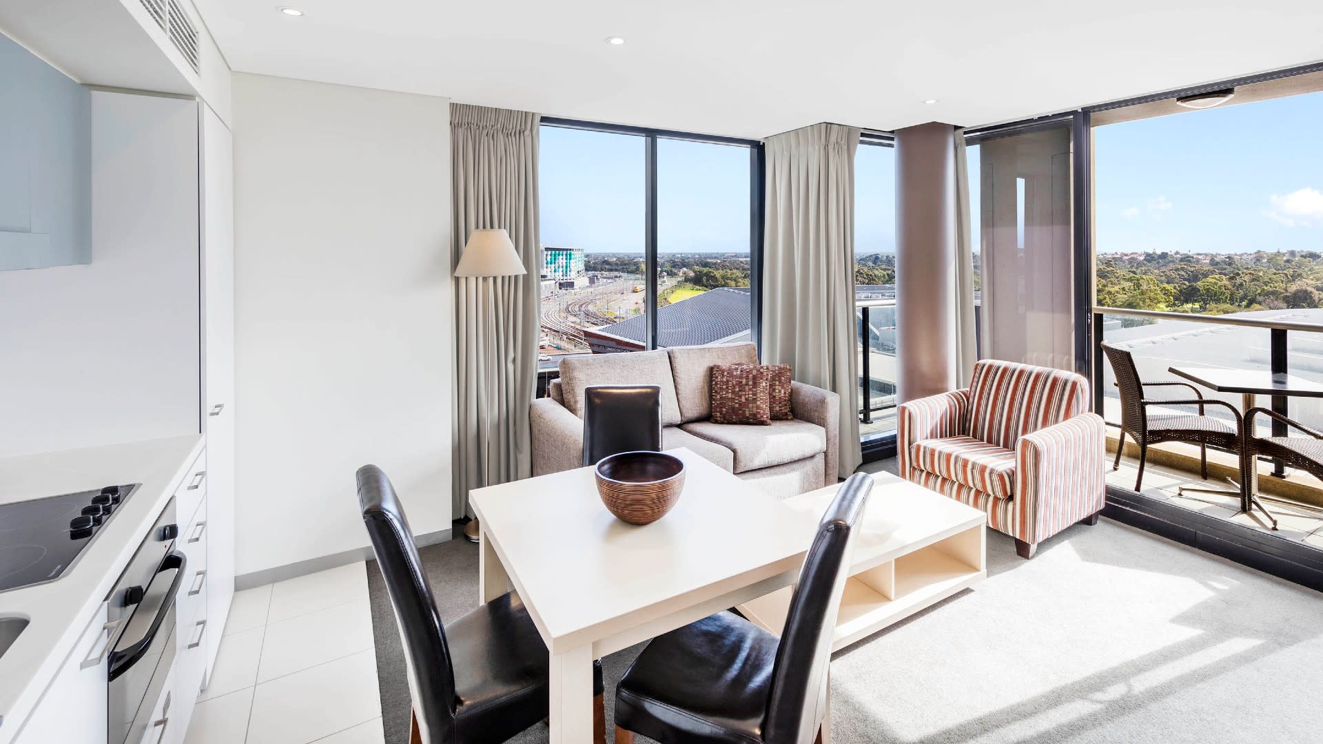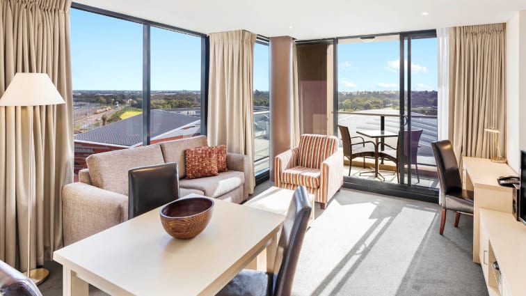 At Oaks Adelaide Horizons Suites, our rooms are designed with comfort and functionality in mind. Each suite has a fully-equipped kitchen and laundry facilities, making it ideal for short- and long-term stays. Relax on your own private balcony, enjoy the modern amenities, and take advantage of the spacious living areas. Whether you're visiting for business or leisure, our suites provide a comfortable and practical solution for your accommodation needs in Adelaide.
