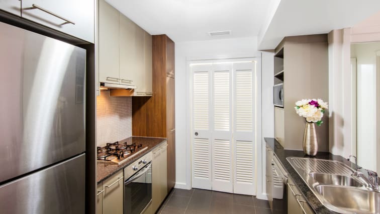 All rooms at Oaks Brisbane Mews Suites come with full kitchen and laundry facilities. For further details, please visit our room amenities page.