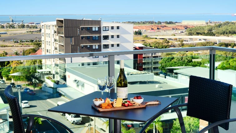 Most one-bedroom apartments at Oaks Gladstone Grand Hotel offer stunning views of the Gladstone harbour from private balconies.
