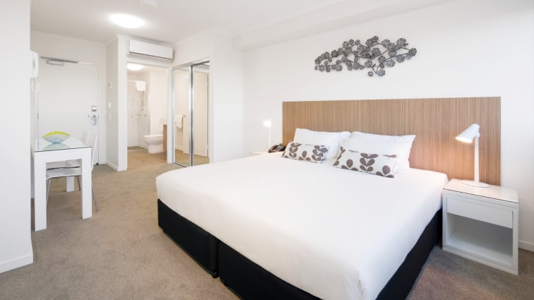 Oaks Mackay Rivermarque Hotel offers a range of accommodation options designed to suit every traveller’s needs. Choose from comfortable hotel rooms and studios to more spacious 1 and 2-bedroom apartments, each thoughtfully appointed to ensure a pleasant stay. Each room features essential amenities such as tea and coffee-making facilities, while our apartments go a step further with fully-equipped kitchens. This allows you to prepare your own meals, adding a touch of convenience and home comfort to your stay.