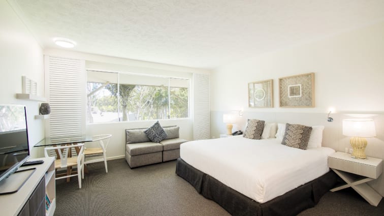 Oaks Sunshine Coast Oasis Resort has facilities designed for relaxation and adventure. Guests can unwind in the lagoon-style swimming pool, indulge in the jacuzzi, or explore the lush tropical gardens. For younger guests, the Oasis Water Park and Adventure Zone provide endless entertainment, while tennis courts offer a chance to challenge friends and family.