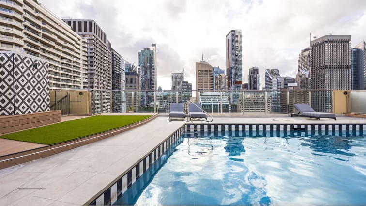 During your stay, you can use our rooftop heated swimming pool, sauna, fully equipped gym, and in-room dining services via Menulog.