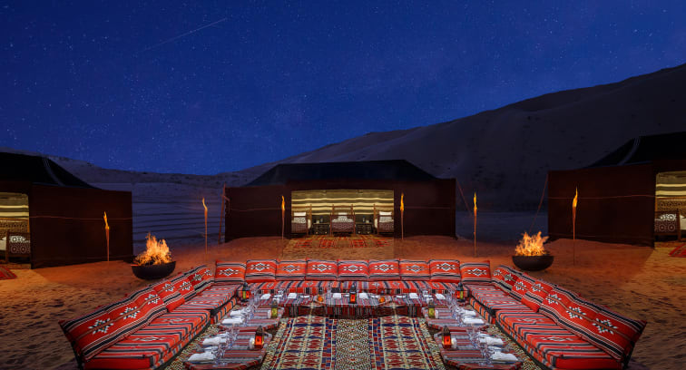 Despite the remoteness, our guests enjoy a world of sophisticated cuisines at our six restaurants and bars, including quite possibly the world’s only desert steakhouse where prime cuts and lobster are paired with fine wines and stunning sunsets. Join us at our campsite out in the desert for a traditional Bedouin feast, or request your own camp for the most memorable of celebrations, with a personal chef to prepare your meal and a butler to serve.
