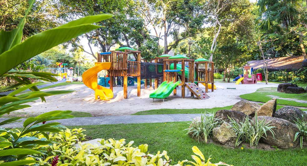 The resort has a collection of bars and restaurants that celebrate local flavours and international favourites. Grab a spot of lunch at Tabaréu, which has a serene atmosphere down by the beachfront. Meanwhile, Goa Restaurant serves traditional Bahian cuisine for breakfast and dinner, and the Água de Coco Coffee Shop offers snacks and sweets made fresh daily. For a relaxing meal, À Sombra Do Coqueiral is an adults-only restaurant serving international and Mediterranean dishes.
